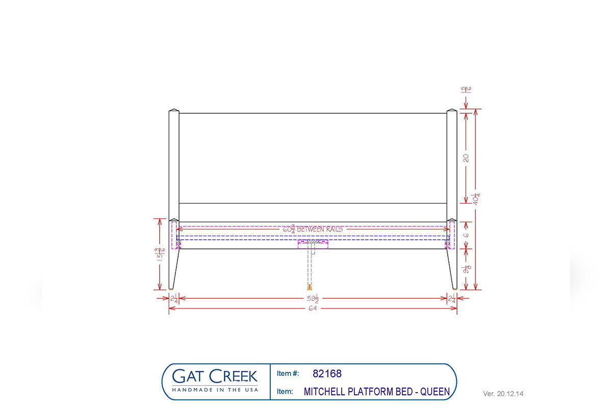 Queen: 64"W x 85.5"D x 40"H