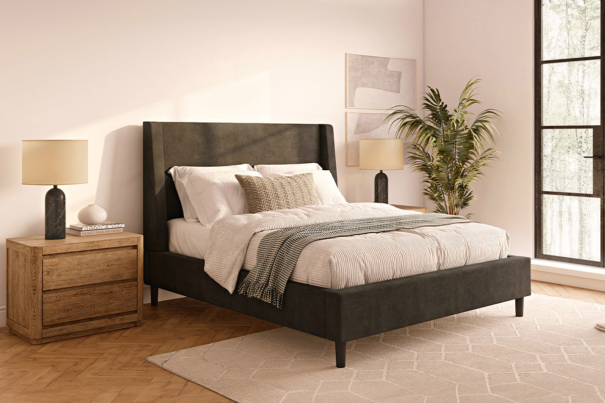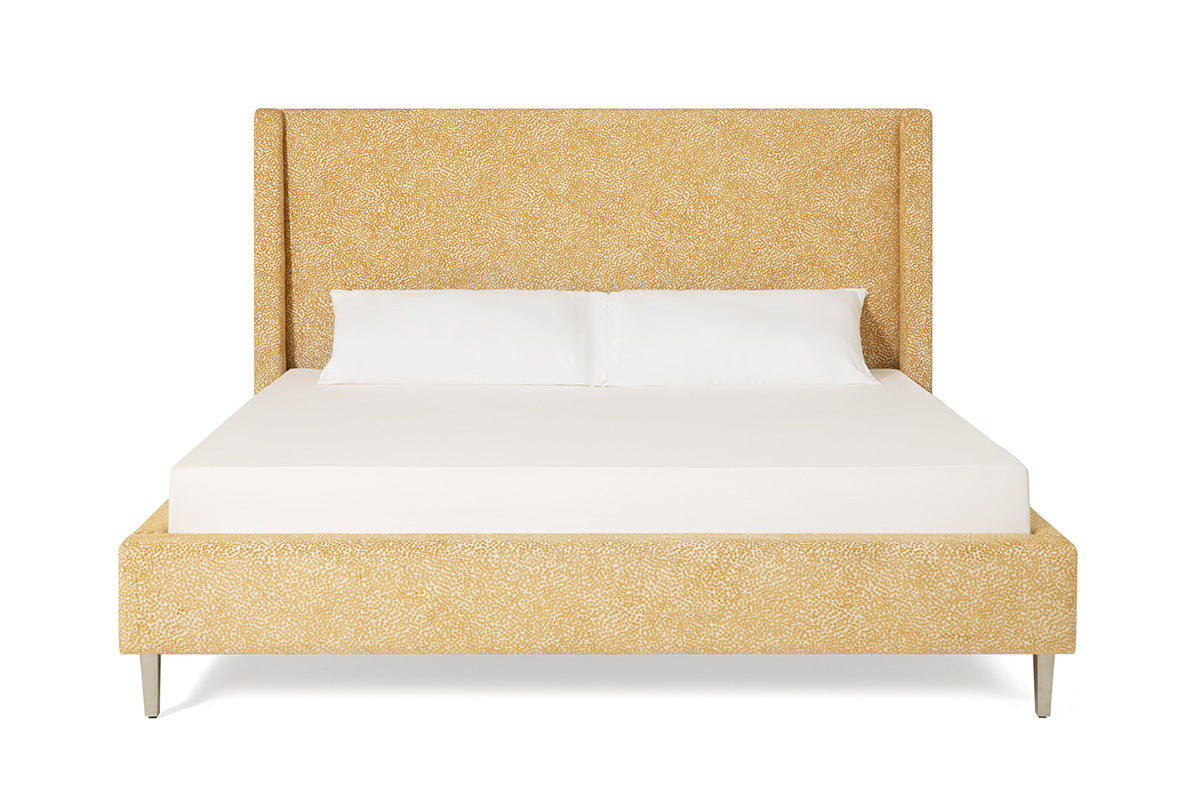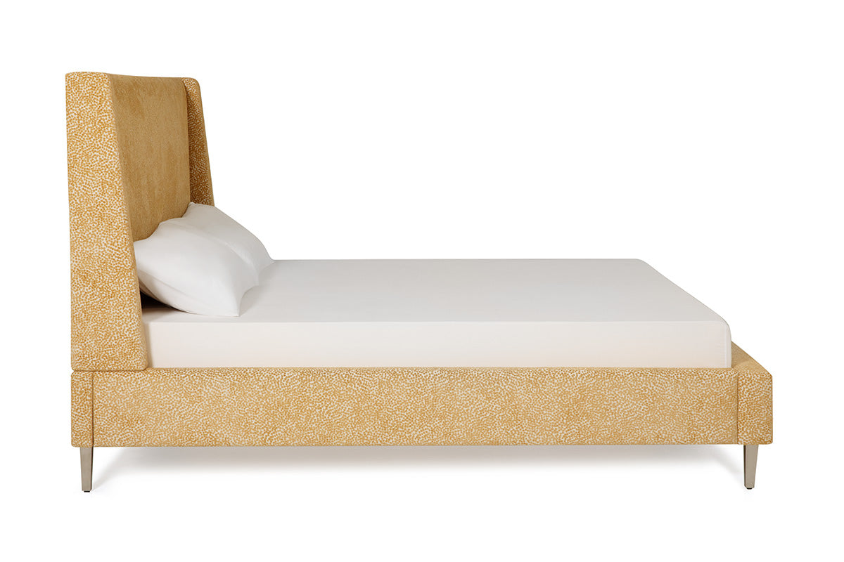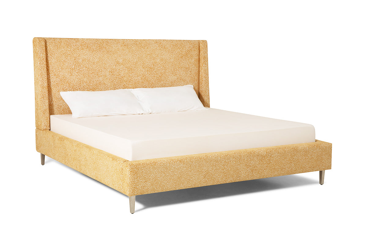 The Skye Bed reimagines the classic wingback headboard with a modern twist. Its soft padded face and tapered wings create a light, airy feel. Available in 54" or dramatic 64" height options to suit your style and space perfectly.