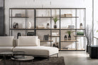 The Archive Étagère is open, airy, and effortlessly modern. Its balanced, asymmetrical shelves adds visual interest, while two height options—77" or 90"—let you choose your perfect fit. Use it as a display shelf or a sleek room divider.