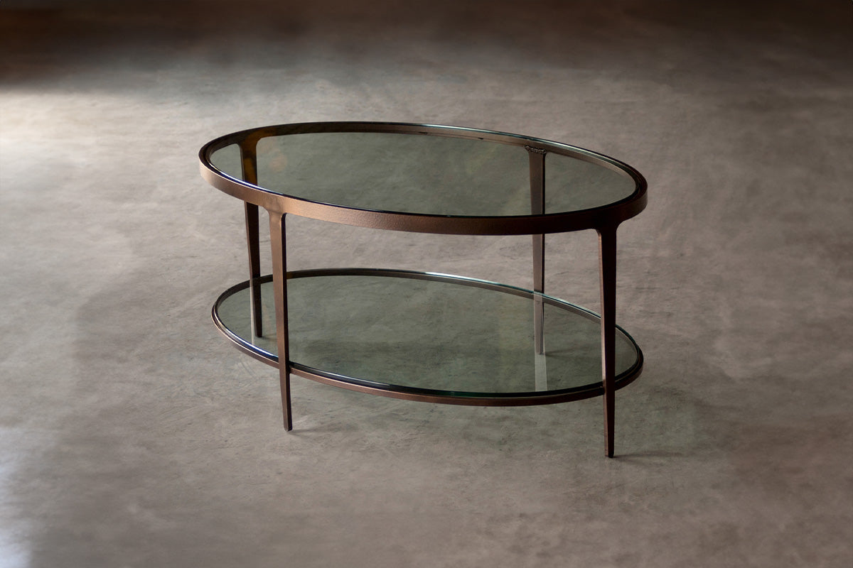The Ellipse Cocktail Table is available with a Glass (3/8") tabletop.