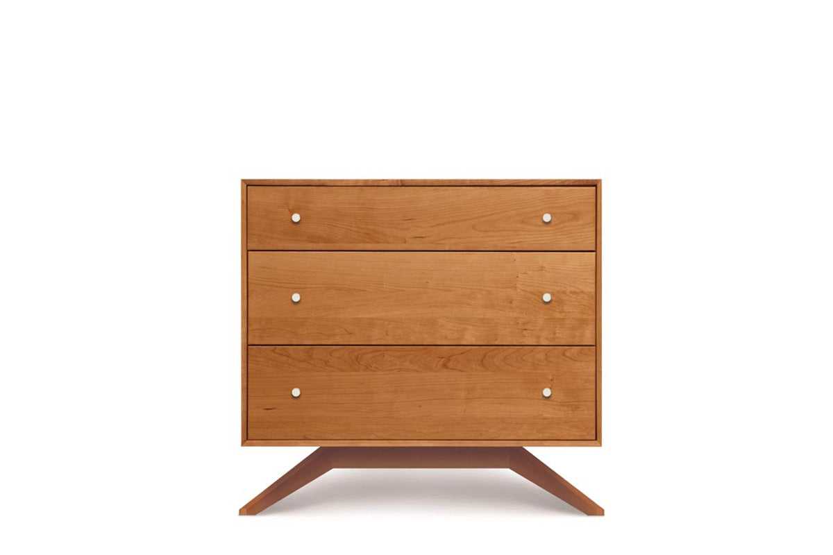 The Astrid 3 Drawer Chest is available in Natural Cherry, Stained Cherry, or Natural Walnut. There are a variety of knob options.
