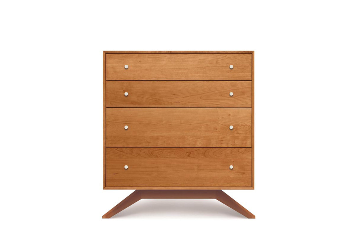 The Astrid 4 Drawer Chest is available in Natural Cherry, Stained Cherry, or Natural Walnut. There are a variety of knob options.
