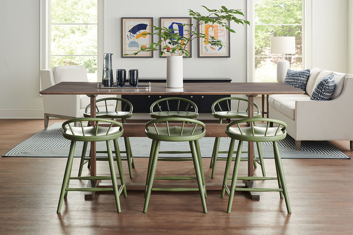 The Long Island Counter Chair offers a low-profile look with a nod to classic Windsor style. Its deeply scooped seat ensures comfort, making it the perfect addition to any counter space.