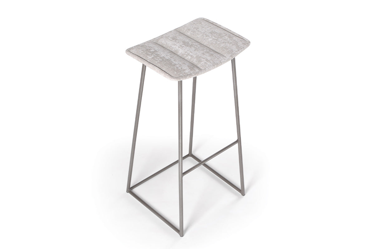 The Trica Palmo Stool boasts a contemporary, minimal design with a firm, backless seat. Available in counter and bar heights, it offers customizable upholstery and finishes, including powder-coated finishes or lustrous brushed steel.